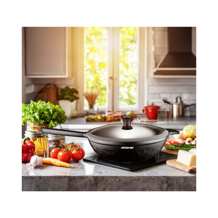 تابه ووک 32 سانت چدن عرشیا CO110-3160 دارای مواد آلومینیومی ریخته گری با بالاترین کیفیت با فضای داخلی غیر چسبنده چدن با طراحی ووک حرفه ای باعث پخت بدون دردسر می شود. اشکال متنوع که چندین تکنیک مختلف پخت و پز را در خود جای داده است. دستگیره های بلندی که برای ساعت ها طبخ راحت روی اجاق گاز خنک می ماند.
