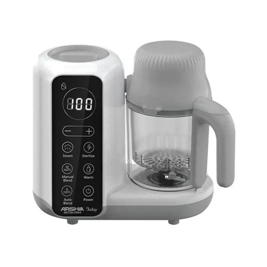 غذاساز کودک عرشیا یک وسیله با 7 عملکرد برای انواع غذا ها ماننده سبزیجات، گوشت مرغ و ماهی را به بهترین روش خرد می کند. این وسیله بهرین راه حل برای مادران پر مشغله است. غذاساز کودک عرشیا با قدرت 600 وات غذا ها را به سرعت یخ زدایی، بخارپز، خرد یا مخلوط می کند بدون آنکه باقی مانده غذا داخل ظرف بماند. ظرفیت 300 میلی لیتری دستگاه برای گرم کردن شیر بچه تادمای 104 درجه سانتی گراد بسیار عالی است. برای گرم شیر کودک آن را داخل ظرف دستگاه قرار دهید و 3 الی 4 دقیقه صبر کنید تا به صورت خودکار خاموش شود.
