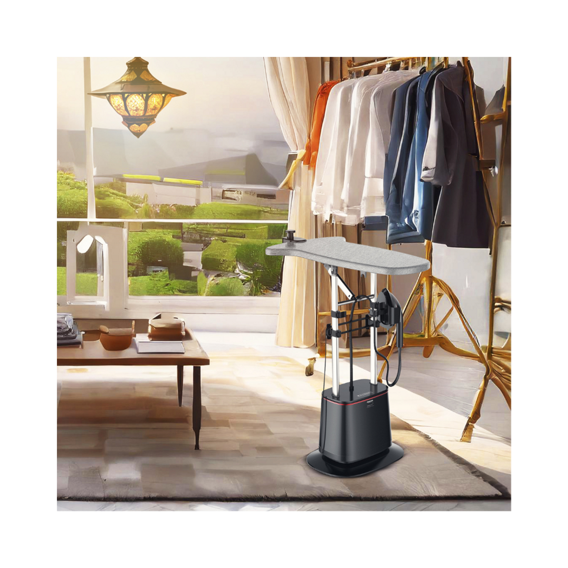 - طراحی ایستاده: این اتو بخار به صورت ایستاده طراحی شده است که استفاده از آن را بسیار آسان و راحت میکند. شما میتوانید لباسها را روی یک چوب لباسی آویزان کرده و به راحتی با حرکت دادن نازل بخار، چین و چروکها را از بین ببرید.