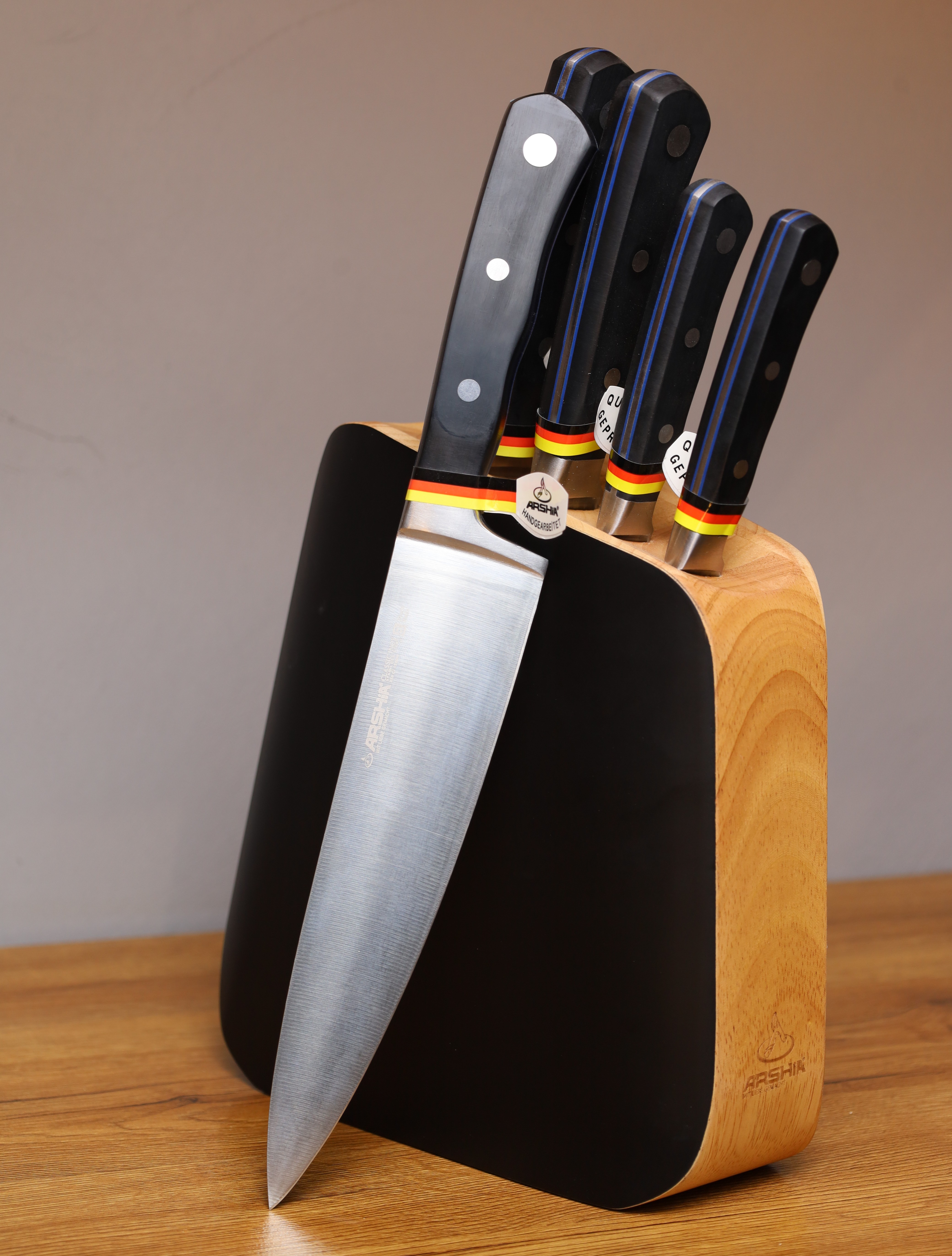 آشپزخانه خود را با ست چاقوی ۶ تکه Arshia با بلوک چوبی، که برای استفاده روزمره با چاقوهای باکیفیت، تخته خردکن بامبو و بلوک کم جا ساخته شده است، ارتقا دهید. این ست برای تمام نیازهای آمادهسازی غذای شما با کمی سبک، ایدهآل است.