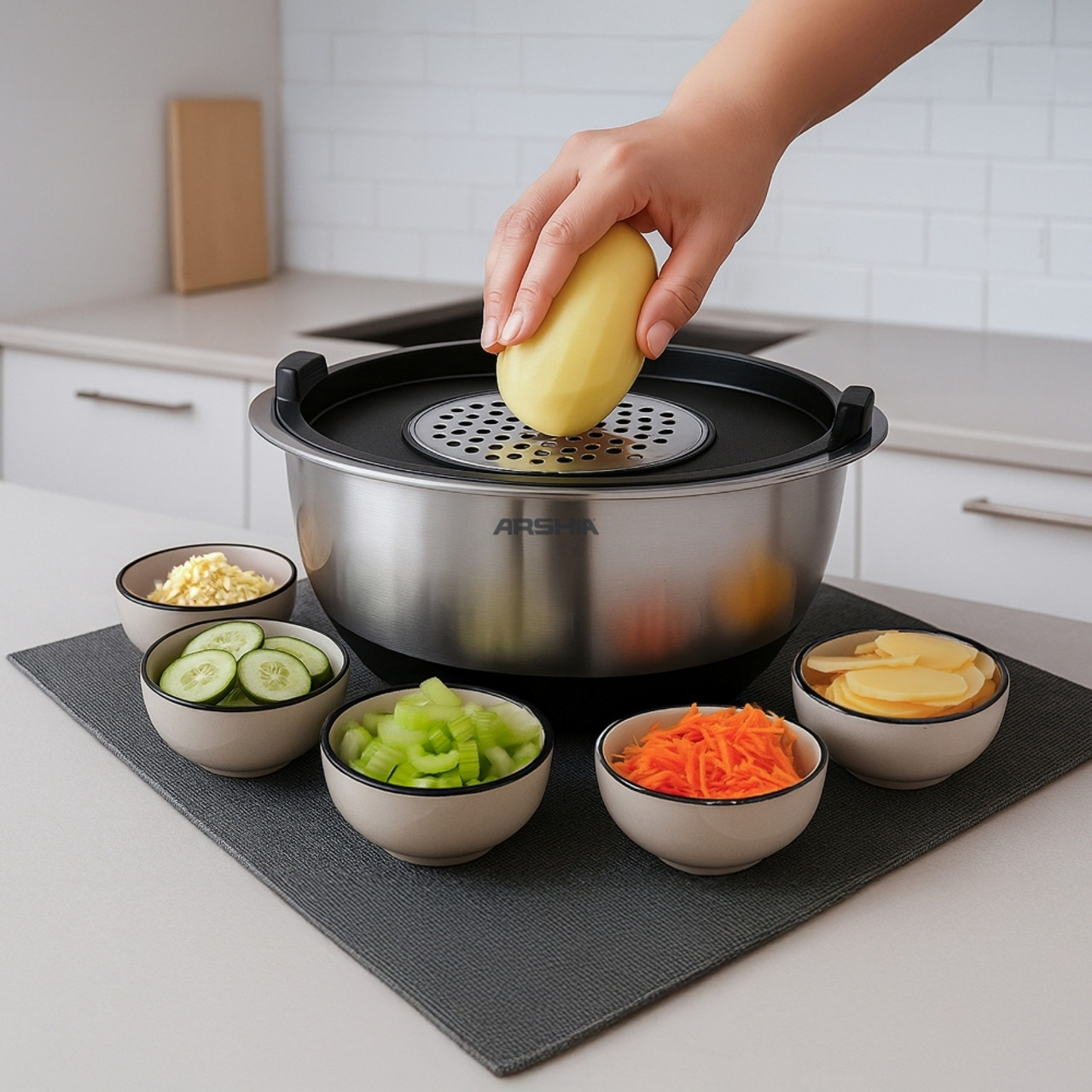 سرویس کاسه مخلوطکن 12 تکه عرشیا مدل MB278-3638 یک انتخاب اقتصادی و کاربردی برای هر آشپزخانه است. این مجموعه شامل چهار کاسه استیل ضدزنگ با پایههای ضد لغزش و طراحی تو در تو است که فضای کمی اشغال میکند. با دربهای ضد هوا و سه قطعه رنده، این سرویس برای مخلوط کردن، رنده کردن و ذخیرهسازی غذا ایدهآل است. با کیفیت بالا و طراحی مدرن، این محصول نگهداری آسانی دارد. برای خرید اینترنتی و بهرهمندی از قیمت روز این محصول، به وبسایت عرشیا میشی مراجعه کنید و تجربهای راحت و مقرون به صرفه را داشته باشید. خرید سرویس کاسه مخلوطکن 12 تکه عرشیا را از دست ندهید.