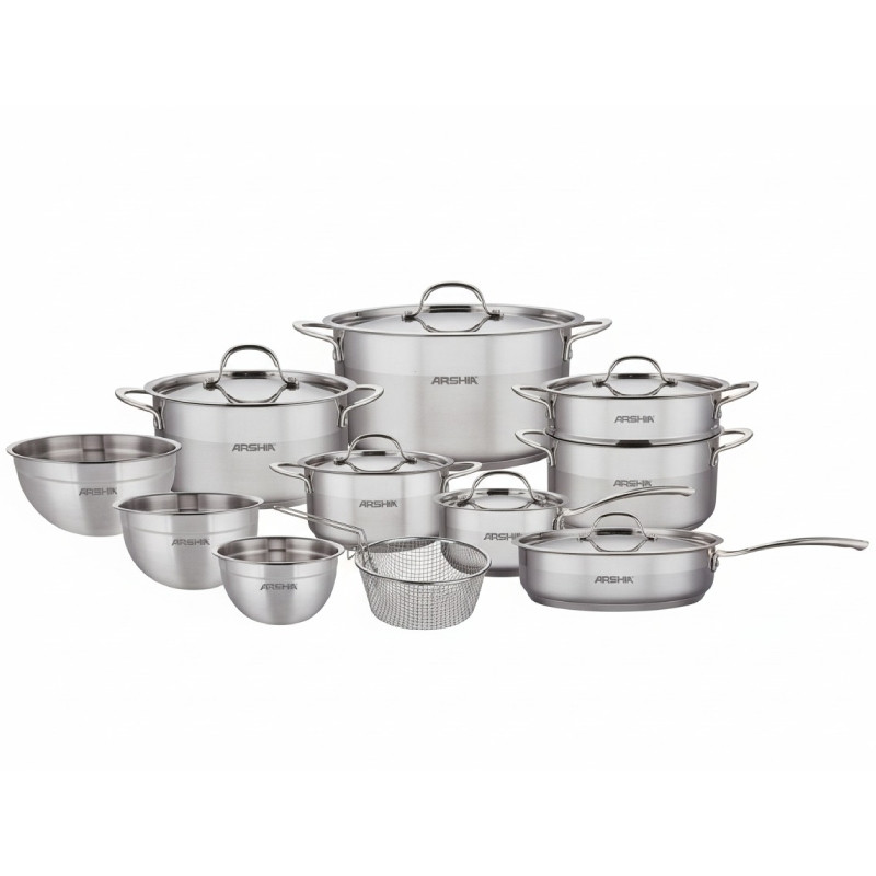 سرویس قابلمه 17 پارچه استیل عرشیا مدل SS339-3642 یک انتخاب عالی برای آشپزخانههای مدرن است. این سرویس شامل قابلمهها، شیرجوش، سافی بخارپز، تابه و توری سرخ کن استیل ضد زنگ 18/10 میباشد که به شما امکان پخت و پز یکنواخت و سریع را میدهد. طراحی ارگونومیک دستهها و مقاومت بالا در برابر زنگ زدگی، این محصول را برای استفاده طولانی مدت مناسب میسازد.برای خرید اینترنتی این محصول با کیفیت و قیمت مناسب، به وبسایت عرشیا میشی مراجعه کنید.