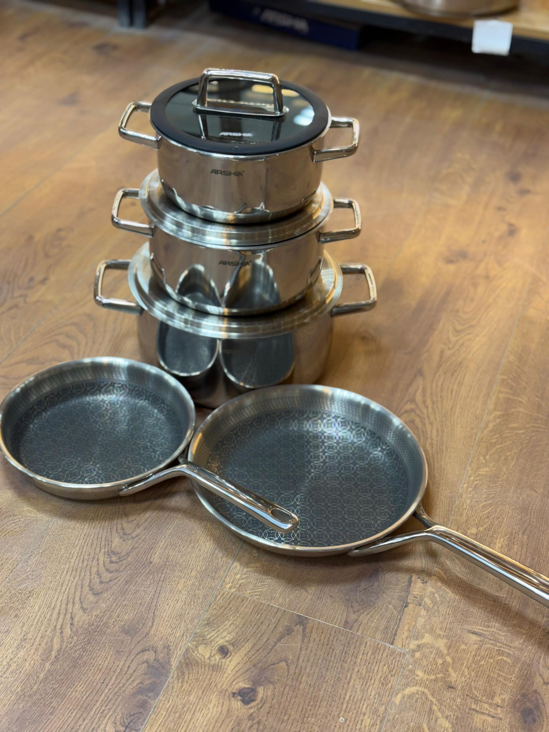 با سرویس قابلمه 8 تکه کف لیزری عرشیا مدل SS050-3701، تجربهای بینظیر در آشپزی را تجربه کنید! طراحی مدرن و کف لیزری باعث پخش یکنواخت حرارت میشود، و دوام بالا همراه با پوشش نچسب، لذت آشپزی را دوچندان میکند. همین حالا به آشپزخانهتان زیبایی و کارایی ببخشید!