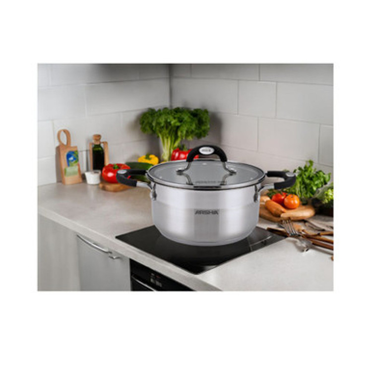 قابلمه ۲۴ سانت استیل عرشیا مدل SS478-3080 با دستههای سیلیکونی، یک انتخاب بینظیر برای آشپزخانههای مدرن! با طراحی زیبا و کیفیت عالی، این قابلمه حرارت را یکنواخت پخش میکند و دستههای سیلیکونی آن کار با آن را راحت و ایمن میسازد. مناسب برای آشپزی حرفهای و روزمره! همین حالا خرید کنید و کیفیت را به آشپزخانهتان بیاورید!