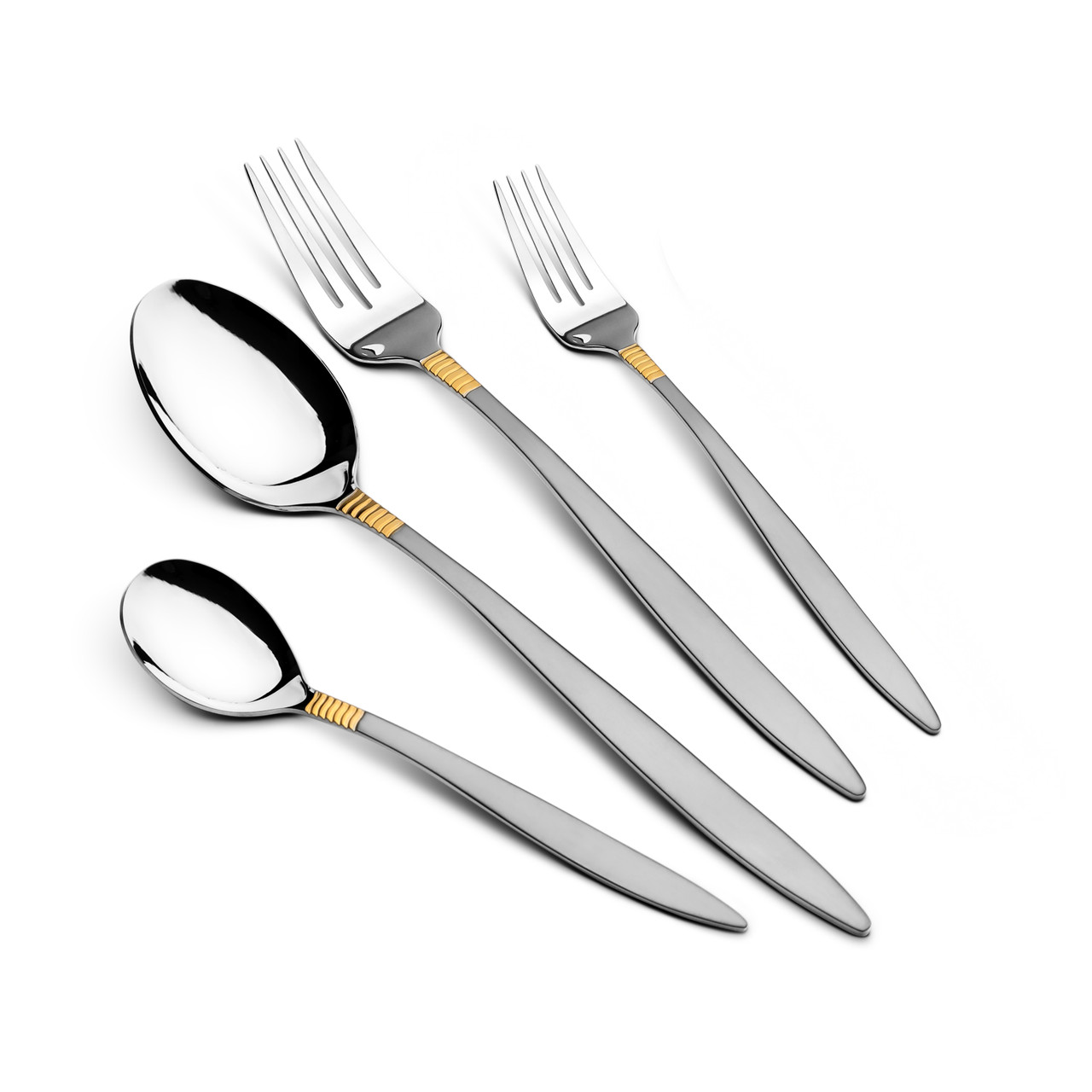 با این سرویس قاشق و چنگال ۴۸ پارچهی نفیس طلایی-نقرهای، از هنر غذاخوری شیک و مجلل لذت ببرید. هر قطعه با روکش طلایی درخشان خود، جلوهای از تجمل و ظرافت را به هر میزی میبخشد. این سرویس برای شامهای خودمانی، دورهمیهای مجلل و هر چیزی بین این دو، ایدهآل است.
