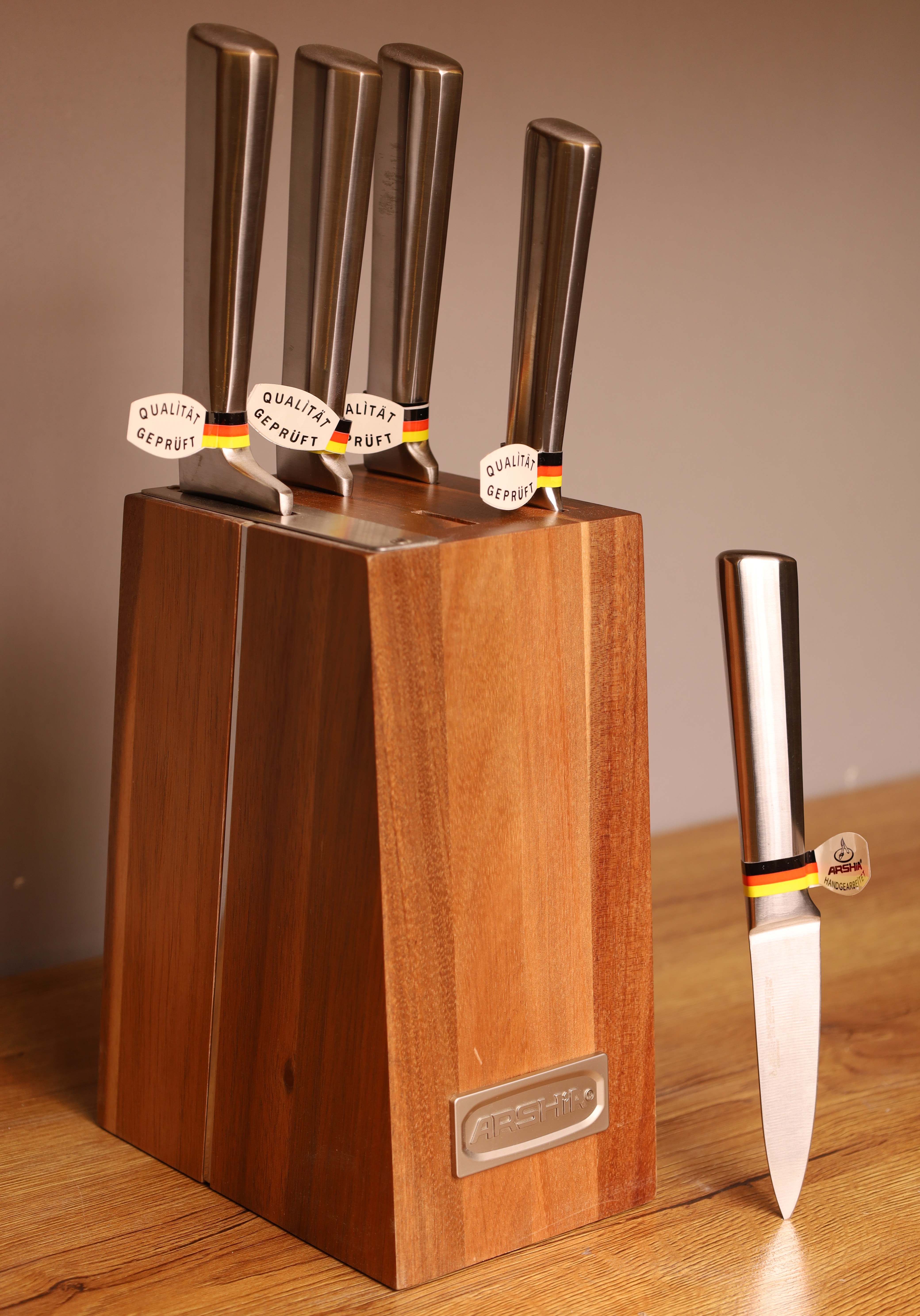 با ست چاقوی ۶ تکه عرشیا، آشپزی خود را متحول کنید. این ست که برای دقت و راحتی ساخته شده است، همراه شما در آشپزخانه برای برش، خرد کردن و آمادهسازی است. از سبزیجات لطیف گرفته تا گوشتهای لذیذ، هر چاقو به راحتی از پس هر کاری برمیآید و همه چیز به طور مرتب در یک بلوک شیک قرار گرفته است.