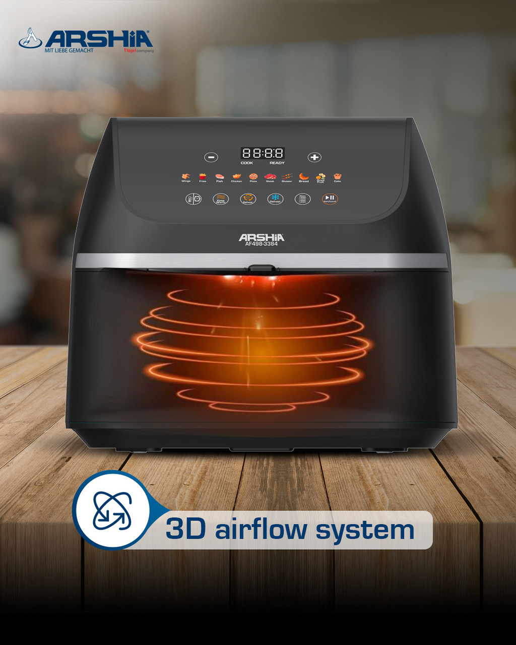 سرخ کن 9 لیتری عرشیا مدل AF498-3384 یک سرخکن بدون روغن (هواپز) است که با استفاده از فناوری گردش هوای گرم غذا را با چربی کمتر سرخ و برشته میکند. این دستگاه برای افرادی که به دنبال غذای سالمتر هستند، گزینهای ایدهآل محسوب میشود.