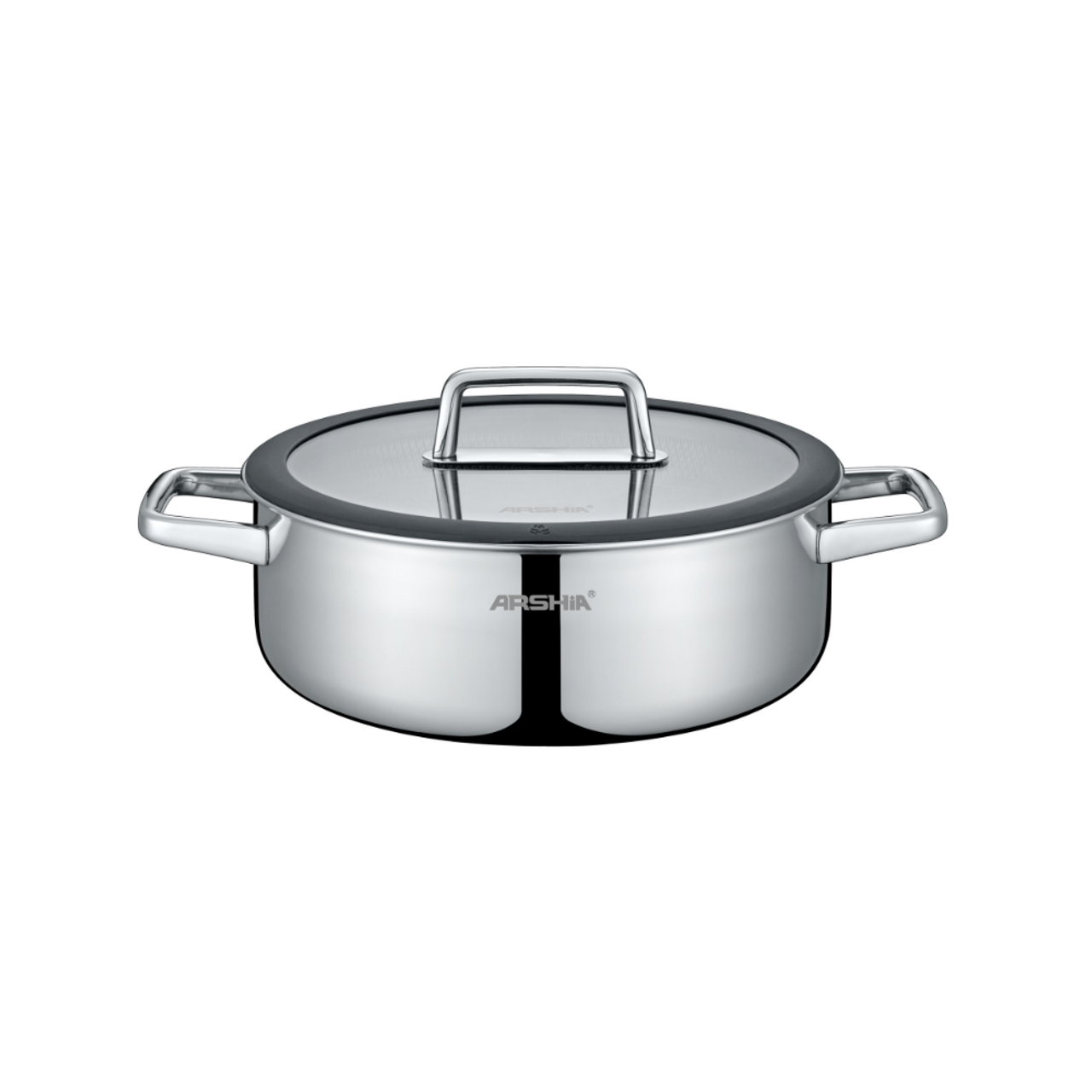 ماهیتابه دو دسته استیل عرشیا مدل SS050-3340 با طراحی سهلایه (Triply) و ساختاری مقاوم، یک انتخاب حرفهای برای هر آشپزخانهای محسوب میشود. این تابه ۲۴ سانتیمتری با ظرفیت 3.5 لیتر، مناسب پخت انواع غذاها از سرخکردنیها گرفته تا خوراکهای روزمره است. کف لیزری و هستهی آلومینیومی باعث پخش یکنواخت حرارت میشود و روکش نچسب با کیفیت بالا، امکان پخت سالم با کمترین میزان روغن را فراهم میکند. این ماهیتابه با درب شیشهای حرارتدیده و دستههای استیل ارگونومیک، هم کاربردی و هم زیباست. علاوه بر این، قابلیت استفاده روی تمام اجاقها، از جمله اجاق گازی، برقی و القایی، و همچنین امکان