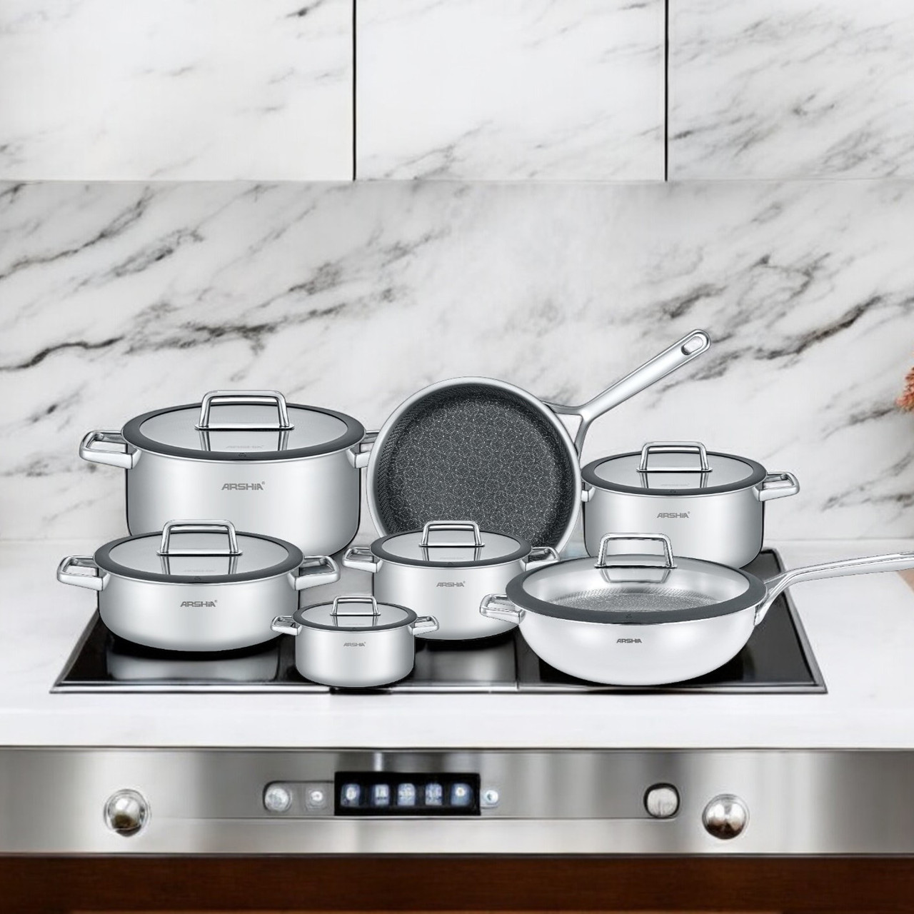 این سرویس قابلمه با طراحی چندلایه (کف سهلایه) به گونهای ساخته شده که حرارت را به سرعت و به طور یکنواخت پخش میکند، در نتیجه غذا به صورت یکنواخت و با کیفیت بهتر پخته میشود. همچنین این قابلمهها برای انواع اجاقها از جمله اجاقهای القایی مناسب هستند و قابلیت استفاده در فر و شستشو در ماشین ظرفشویی را دارند که کاربری آن را بسیار آسان و راحت میکند. دستههای ارگونومیک و خنک نیز باعث میشوند در استفاده طولانیمدت راحتی کامل را تجربه کنید.
